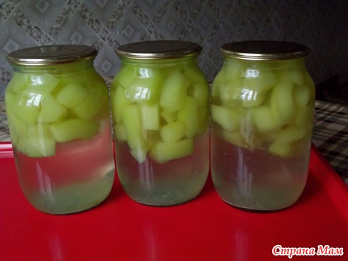 Нашла в интернете интересный рецепт по приготовлению компота из кабачков. В заявленном рецепте написано, что по вкусу компот не отличается от ананасового. Сделала три литровых банки на пробу.