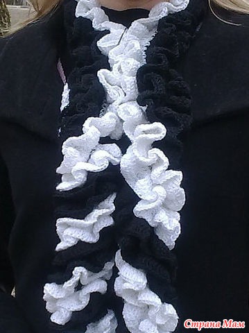 http://www.liveinternet.ru/users/1810675 вот по ссылочке найдите там есть этот шарфик, правда он очень тяжелый получается.и свой я вязала в 4 ряда, а не в 2 как по ссылке.