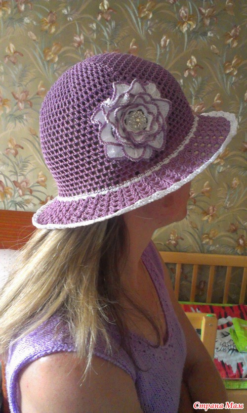 Хотела связать такую шляпку: https://www.stranamam.ru/post/5502859/. Не получилось у меня подогнать узор под нужный диаметр, несколько раз перевязывала, в итоге получилась вот такая шляпка.