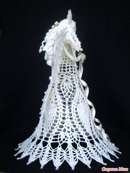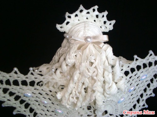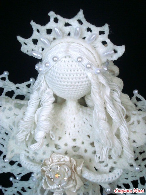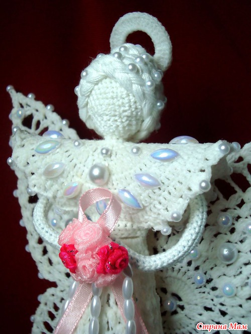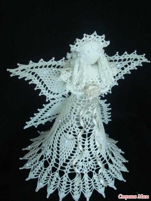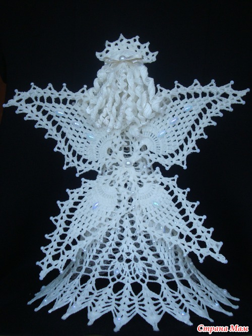 Этого ангела придумала сама, за основу взяла салфетку из интернета и подглядела прическу у ангелочков, которые вяжет Олечка А, спасибо ей за секретики