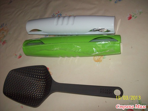 А еще я пользуюсь такими штучками для фольги и пищевой пленки. И шумовка. ей очень удобно вареники вытаскивать с воды или перец болгарский, когда отвариваете для фарширования
