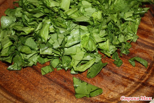 Порезаную зелень отправляем в кастрюлю, когда сварится картошка, щавель очень быстро меняет цвет