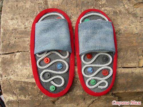 Сначала захотели вязанные тапочки, а внутрь пришить пуговицы, но я как подумала, сколько это вязать