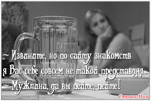 Знаешь, какую формулу мы вывели с Виталием Олеговичем после пятого тоста? “У женщины всегда есть повод для недовольства. Первый — муж, второй — наличие мужа в принципе, третий — отсутствие мужа в данный момент”. В общем, часа через три мы покинули унылые стены офиса, переместились в пивбар, где перешли на „ты”, и шеф потребовал звать его Виталиком.