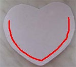 Сделайте из картона ножку-опору, на которую будет опираться рамка, приклейте (фото ниже). Теперь соедините сердечко с рамкой. Клей нанесите по краю как на фото ниже. Красная линия - это граница, за которую не должен выходить клей. Как видите, вверху мы оставили место для того, чтобы потом можно было вставить фотографию. Вот и готово!
