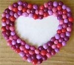 Ход работы: Сразу предупреждаю - работа довольно кропотливая, но результат превосходит ожидания! Вырежьте сердечко и рамку-сердечко из плотного картона. По размерам они, конечно, должны совпадать. Раскрасьте рамку в один из тех цветов, в которые будут покрашены косточки. Это очень важно, иначе будет просвечиваться цвет картона. Разделите ваши косточки на 5 частей и раскрасьте их в разные цвета (можно одного тона). Когда краска хорошо высохнет, покройте каждую косточку лаком со всех сторон. Это для того, чтобы краска потом не смывалась. Приклейте косточки на рамку, дайте высохнуть.