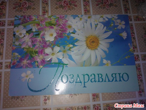 Ещё открыточка с ромашкой и с поздравлением