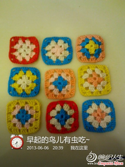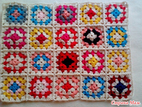 Я навязала квадратиков разного цвета,правда ещё не все по количеству,но глаза уже разбегаются. Интересно кто нибудь ещё заинтересовался этой моделькой?