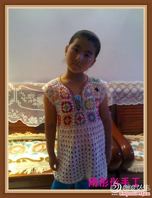 А вообще я в последнее время так увлеклась бабушкиными квадратами, что на одном дыхании еще и пледик дочке связала из остатков