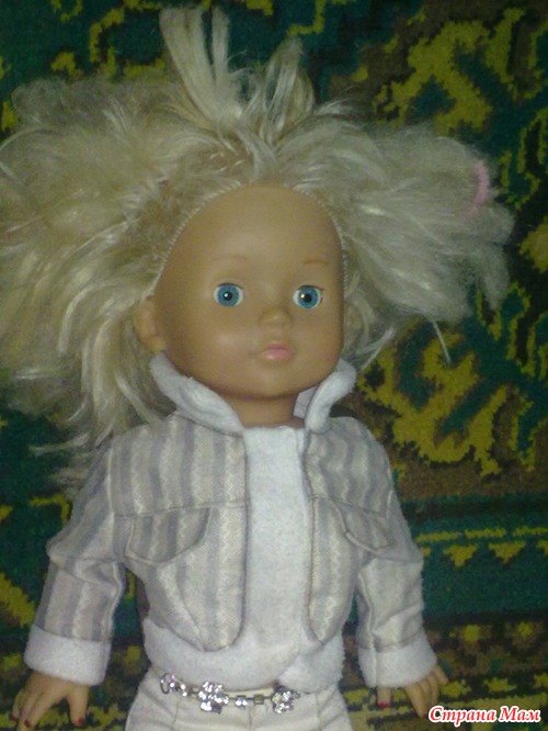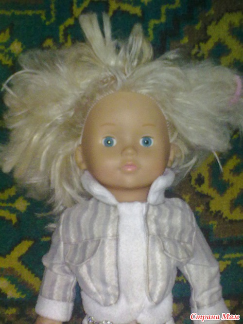 Это игровая кукла моей малышки. До сих пор не знаю, зачем я ее купила, за смешные деньги... Толи бабульку жалко стало, то ли саму куклу. Она была чистая, одежда на ней тоже. Если бы не жутко красные ногти. И на голове: " Я упала с сеновала..." Можно было бы подумать, что с ней не играли.