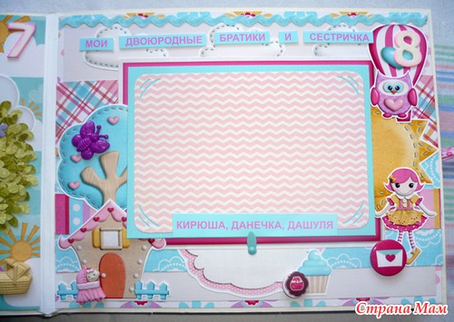 Вообще, этот альбом приходилось делать с пожеланиями заказчицы, которые ну совсем мне были не близки. Тем более она нахваталась каких-то идей в интернете, которые ну я совсем не разделяю. Надеюсь, что мне все-таки не удалось повторить то, на что она ссылалась. Я очень старалась в этом преуспеть. Последнюю страницу, вообще, решила не показывать. Вдруг кто-то захочет повторить :-)