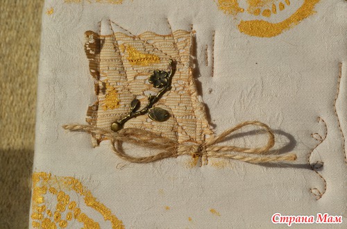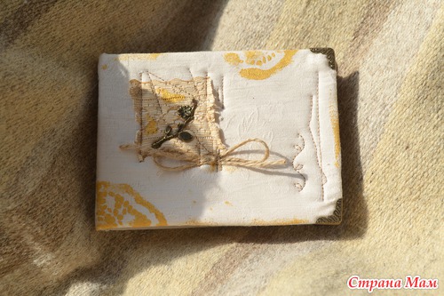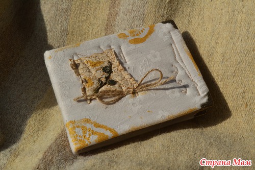 Обложка хлопок+флис. Украшен блокнот винтажным состаренным в кофе кружевом, подвеска цветок, брадс, вощеный шнур, золотой акрил, машинная строчка и уголки.