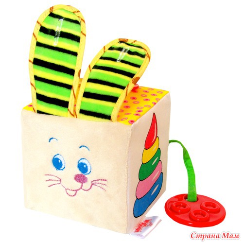 Многофункциональный кубик "Жмурки" - это тактильное, слуховое и визуальное развитие для Вашего малыша, который познакомится с очень "вкусным" прорезывателем. Узнает, что поверхности бывают самые разные: гладкие и шершавые, ровные и бугристые, тёплые и холодноватые, шелковистые и ворсистые. Услышит, как хрустят ушки зайки. А ещё Зайка готов играть с вашим малышом в прятки хоть целый день! Закрывайте глазки зайки ушками, а потом весело, со словами "А где же Зайка?" и "Ку-ку", открывайте ушки!