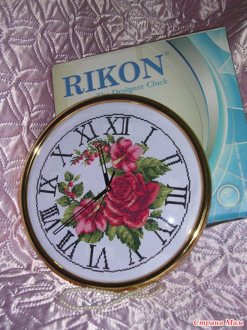 Вышились эти часики давно, еще зимой, в подарок родственникам из Росии. Хотела оформить в багетке, но как-то неожиданно решили ехать в гости на месяц раньше... Поэтому на багетку времени уже нет, пришлось оформлять самой. Хочется верить, что хоть немного получилось... А как Вам?