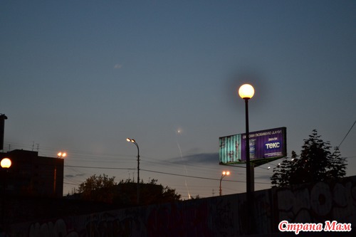 Даа, в мае 2011 ракета с космодрома Плесецка летела эффектнее. А с Байконура траектория немного дальше от города, но все же многие ее заметили и незнающие спрашивали на форумах что упало с неба