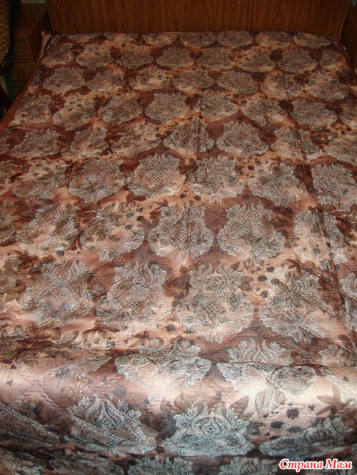 Заказывала я комплект в спальню -"Фиеста", цвет - коричневый. Я сначала переживала по поводу цвета, но когда получила, то осталась ОЧЕНЬ довольна, т. к. расцветка очень приятная и к запланированным после ремонта обоям подходит хорошо. Выглядит это так