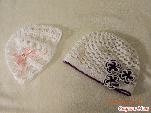 Здесь подробный МК шапочки с цветочками: http://uroki-vyazaniya.ru/shapka-dlya-devochki-kryuchkom-master-klass-dlya-nachinayushhix.html , а вторую шапочку вязала по схемке : https://www.stranamam.ru/post/5728199/