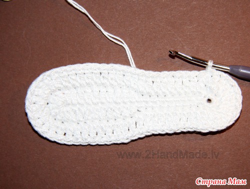 Обвязать подошву (верх 3-его ряда) по кругу мёртвыми петлями