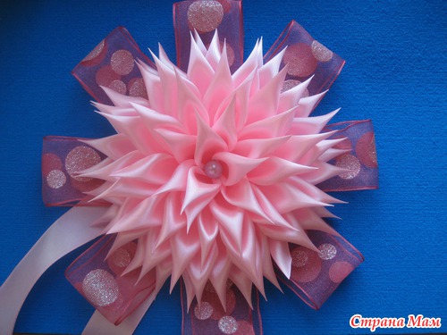 Добрый день, девочки! У коллеге по работе радость-она стала баушкой в квадрате! Сегодня выписывают её вторую внучку Сонечку из роддома, Вот вчера вечером сделала в подарок бант. Покзываю