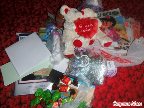 по игре подарки участницам группы ко дню рождению!Я получила очень большую и чудесную посылочку, вот общий вид моих богатств