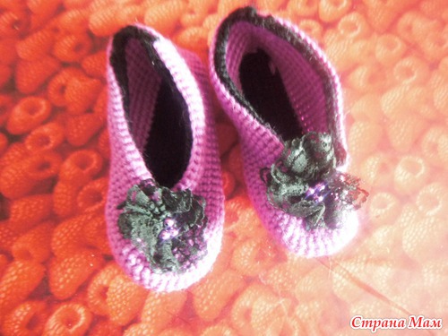 Очаровательные пинеточки для моей доченьки, связанные золотыми ручками Оленьки, спасибо большое солнышко пинеточки отлично подошли, чуть большеваты но отлично держаться на ножке очень красиво!