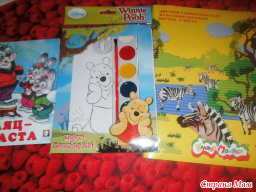 Цветной картон очень красивый, книжечка и раскраска с красками в наборе, сынуля у меня не может оторваться уже всех почти разукрасил :