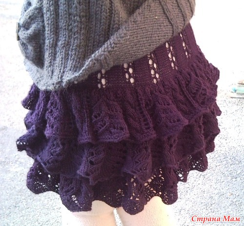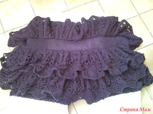 Соединяем оборку и основное полотно. Вяжем ___ рядов лицевой гладью.