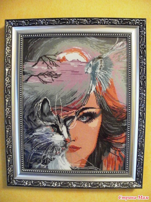 Вчера хвасталась работами дочери, так понравилось, что сегодня решила показать свою. Это моя любимая работа, фактически из-за нее я начала когда-то вышивать. Чья разработка не знаю, доча после долгих поисков нашла схему в интернете. Размер готовой работы на 14 канве 38на49 см, количество цветов 22. Есть отличная схема в РМ кому надо пишите адрес, вышлю всем.