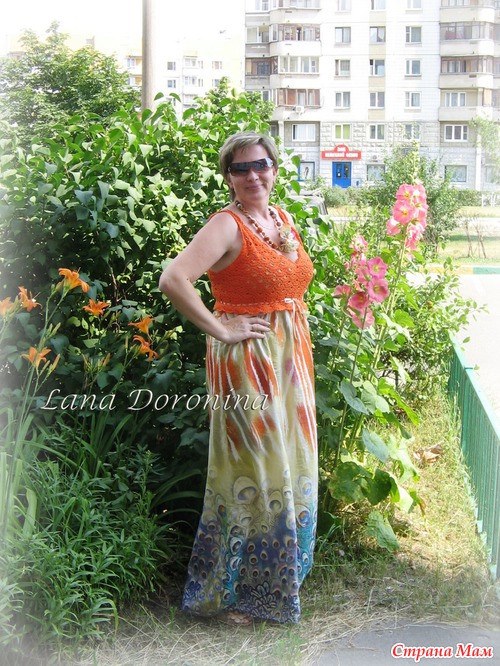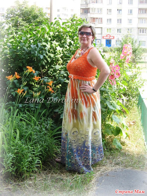 Сарафан из серии "вязание + ткань".