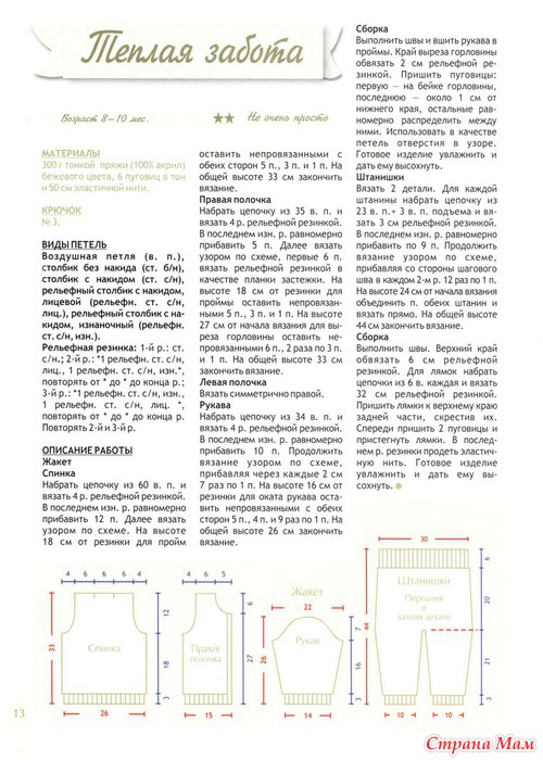Пряжа ADELIA "NATALI" 100% акрил 50 г 300±10 м , ушло 10 моточков и комплект получился такой- кофточка, штанишки, шапочка и пинетки вязала двойной нитью и подошва у пинеток двойная.