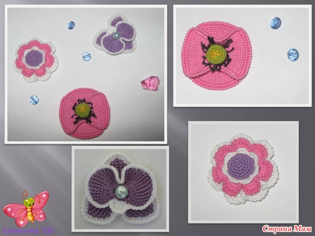 Ниточки использовала " Макси ", крючок 1,5. Все цветочки на булавочках.