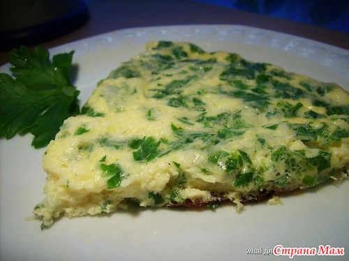 Яйца взбить с молоком, петрушкой, солью и перцем.