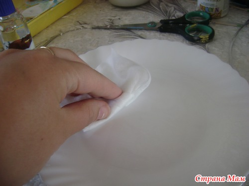 Хочу показать вам милые мои девочки свою конкурсную тарелку. А точнее как я ее делала.Итак, берем тарелку, обезжириваем ее. Я использовала жидкость для снятия лака.