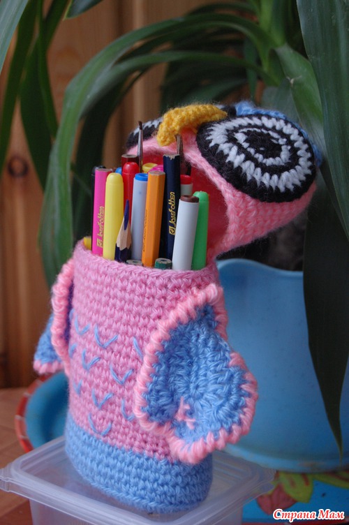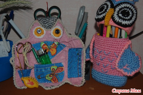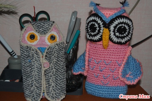 Как то сшила я СОВУШКУ ссылка вот тут https://www.stranamam.ru/post/5841766/ да читатели и друзья ооочень попросили, чтоб к ней, к СОВУШКЕ, сделать и ФИЛИНА. А друзья просят, значит надо делать. А тут, увидела я мастер класс у одной читательницы вот её ссылка https://www.stranamam.ru/post/5408997/ ну ооочень понравилось мне это изделия и я решила, что тоже сделаю. И вот по просьбе моих читательниц я и сотворила ( связала) ФИЛЮ (филина) и получился у меня контейнер для карандашей.. Смотрим, что получилось из моей затеи