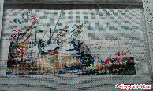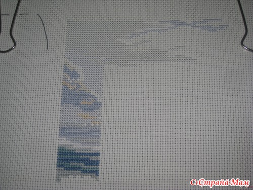 Я в этом порту сообразила подготовку.... И даже отплываю к следующему с началом работы - Скалистый мыс, конечно совсем немного, но накидала эти крестики еще дома, а сюда притащила раму от станка с натянутой работой.... Так что постараюсь находить время по любому!