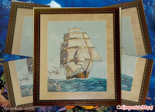 Мой парусник расправил все паруса и ждет оформления.Рамочка подобрана ,только лень оформить пока да и с временем напряг