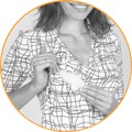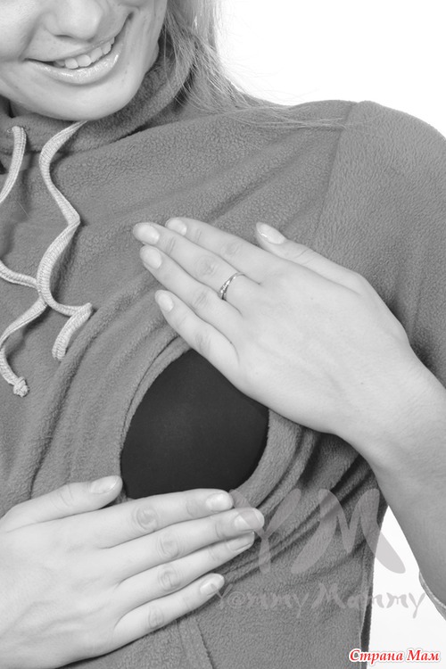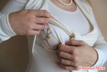 Центральный — Перед блузы двуслойный. Нижний слой имеет вертикальную прорезь по центру, а верхний слой не зашит в бока. Так, отодвинув верхний слой, можно покормить ребенка незаметно для окружающих.