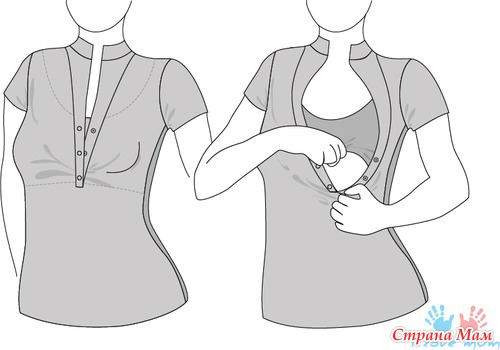 Вся одежда для кормящих мам сконструирована таким образом, чтобы максимально облегчить кормления и минимально отличаться от обычной одежды.