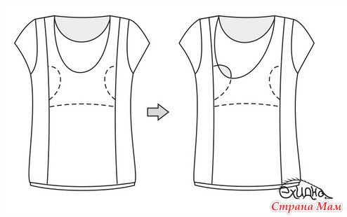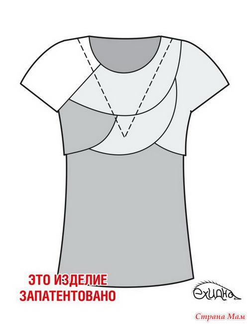 Горловина — конверт (верхний) Для того, чтобы покормить малыша, просто отодвиньте в сторону правую и левую части лифа. Такая горловина скрывает потайные разрезы в области груди.