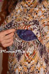 Чтобы покормить малыша, нужно расстегнуть пуговки и поднять карман вверх.