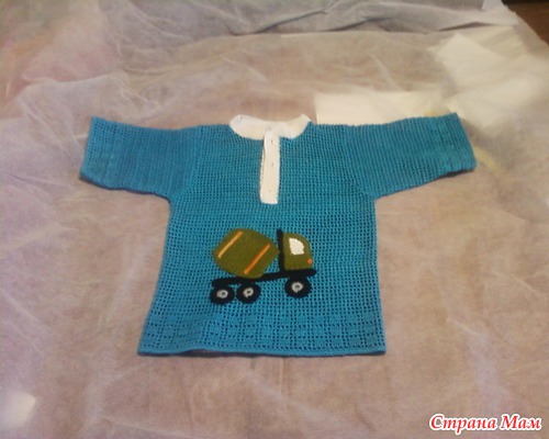Здравствуйте дорогие мамочки!!! хочу вам похвалиться связала рубашечку, младшему внуку мужа, фоткала телефоном наспех перед отправкой, поэтому качество фоток не очень. надеюсь пришлют фото уже во всей красе.