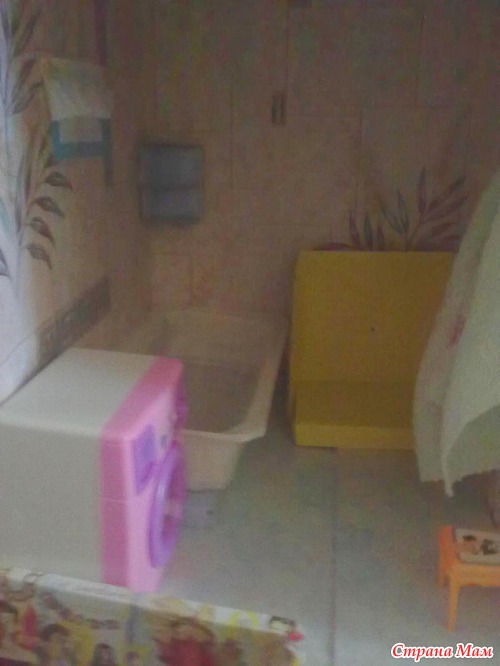 Комнаты обклеила обоями, на кухне и в ванной полы из сайтенга, а в комнате линолиум. Пока ещё не всё, унитаз хочу связать и телевизор, ещё цветами украсить, хотела закончить, но не выдержала, решила похвастать.
