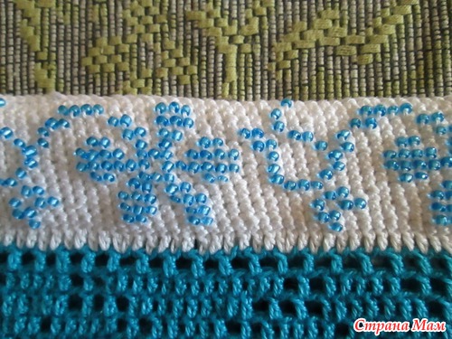 А потом сменила нить на белую и вязала рисунок бисером(очень понравилось кстати, ничего сложного, а результат потрясающий)