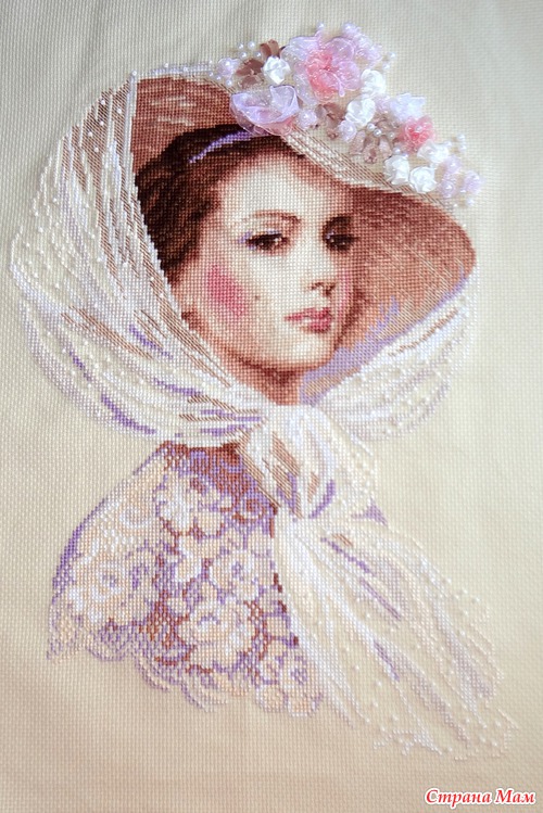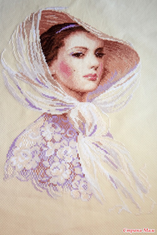 Работа еще не оформлена в багет, так как она предназначается для стены в новом доме, но в нем еще не окончен ремонт. Как только я ее оформлю обязательно покажу. Надеюсь вам понравилась моя дама.)))