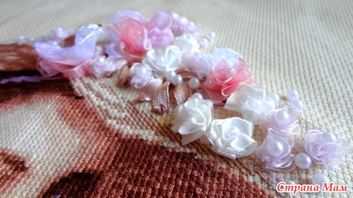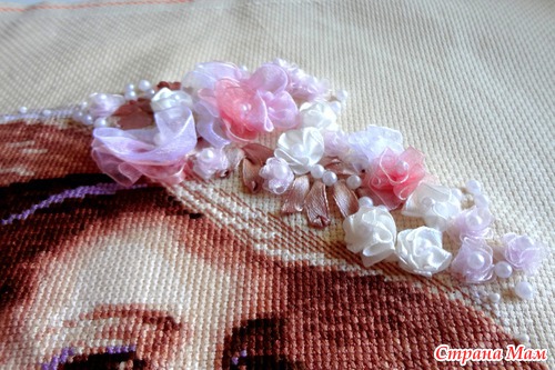 Немного деталек платья, розочки очень красивые. Но как их было нелегко шить... Столько одиночных крестиков...