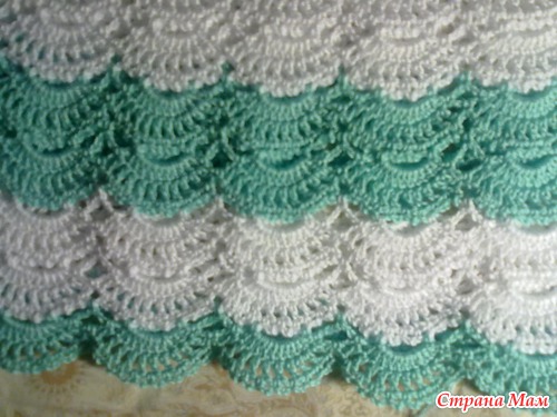 8-13 полоса веерков: крючок 1,4 и в каждой арке 10 ССН (количество ВП в первом ряду в каждой арке увеличила на 1, и во втором ряду между веерками из ССН вязала не 3 ВП, а 4 ВП)
