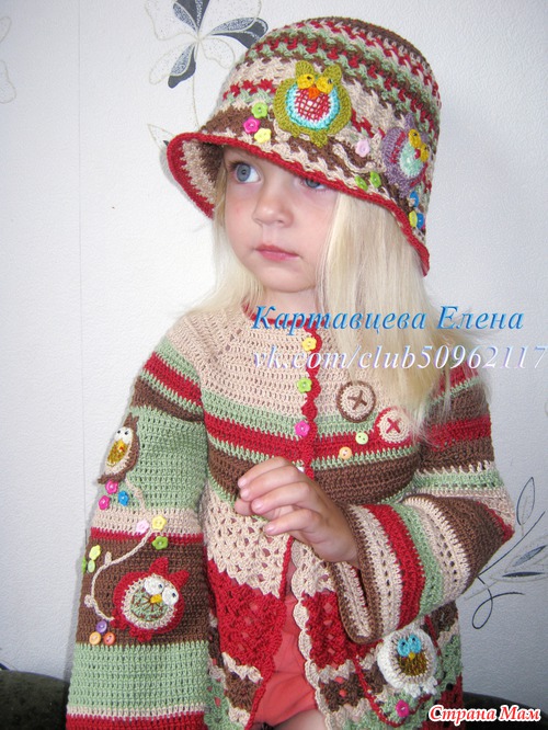 Девчата, хочу показать Вам комплектик, который связала для своей малышки. Вдохновилась работами Вендулы, решила попробовать что-то в этом духе. думаю вышло не плохо, мне нравится, а дочка вообще в восторге.