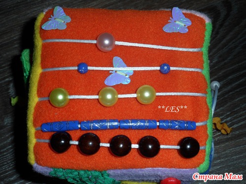 6. Сторона для счета. Считать можно до пяти, двигать бусины, дергать шнурки.