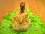 Из опыта могу посоветовать завязать луком-пореем и в конце одеть на ножку бахромчатую салфетку, чтоб держать было удобно!