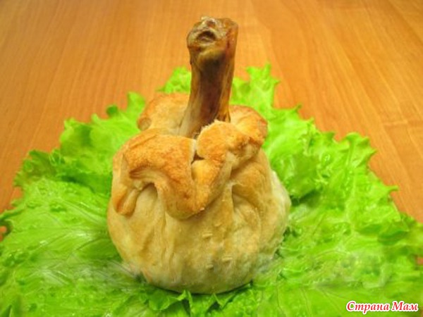 Из опыта могу посоветовать завязать луком-пореем и в конце одеть на ножку бахромчатую салфетку, чтоб держать было удобно!